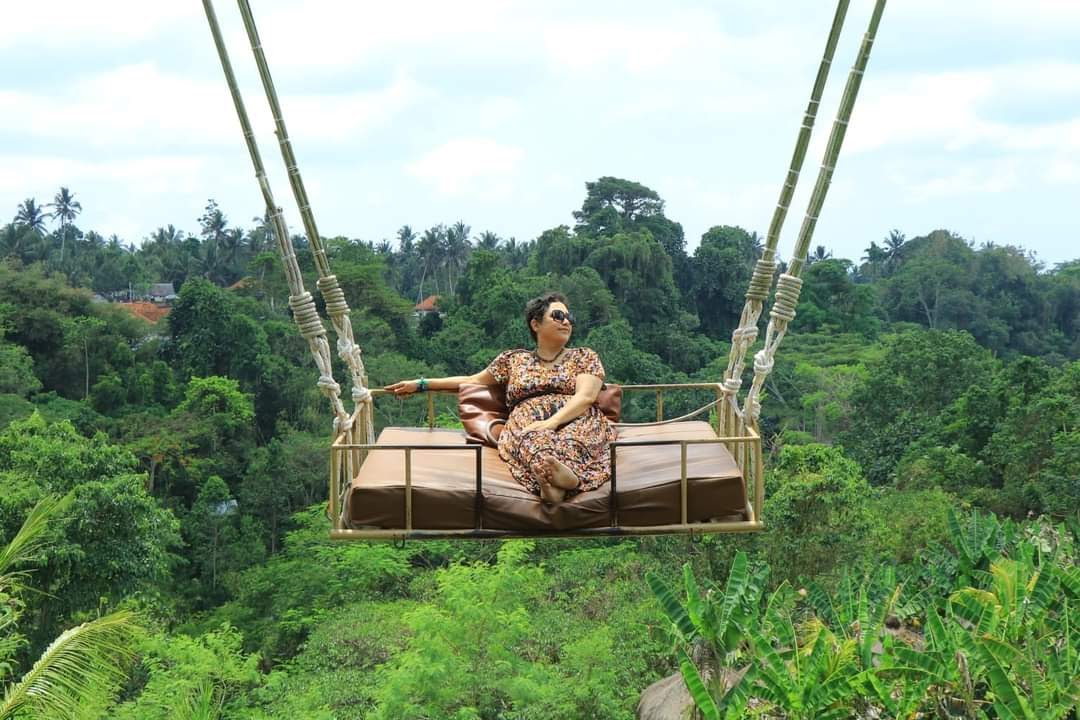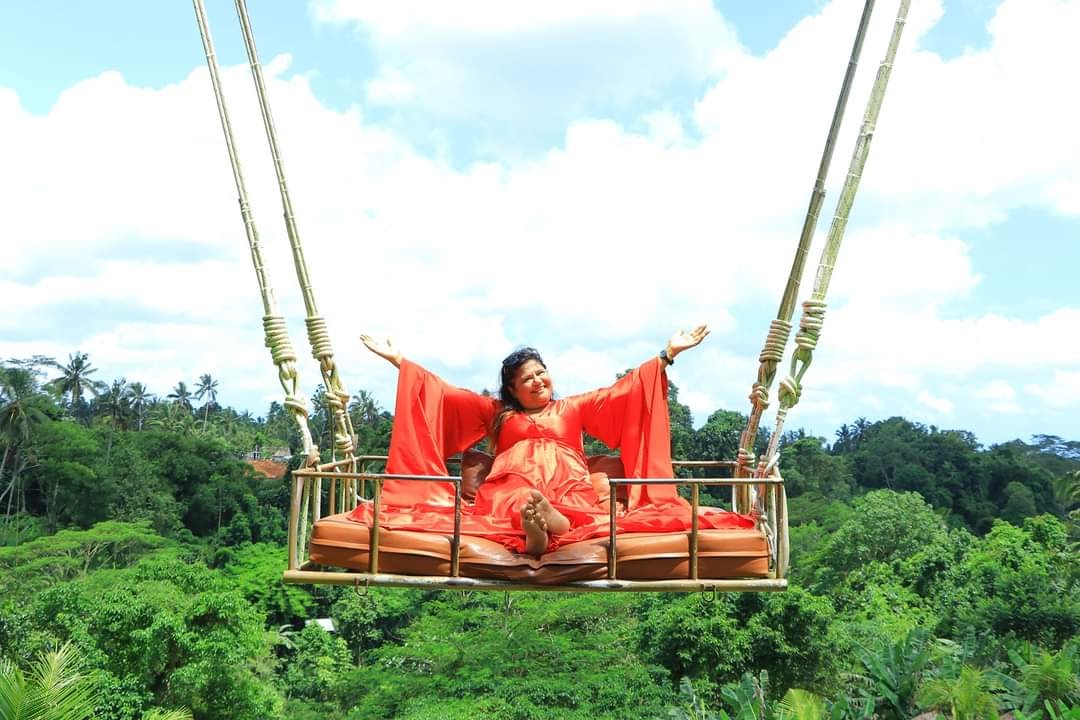 Bali Swing Is A- Destination for photography, with plant- & flower-decked swings against rice field backdrops.